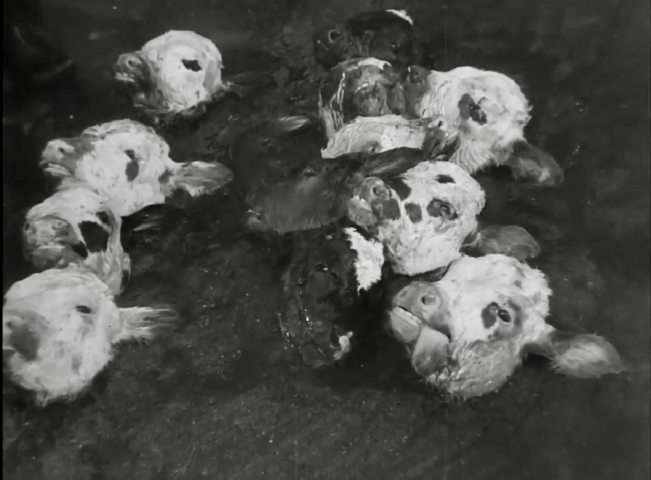Étude du film Le Sang des Bêtes (1949), de Georges Franju. Questions sur les abattages illégaux de la guerre de la macronie contre le peuple français.